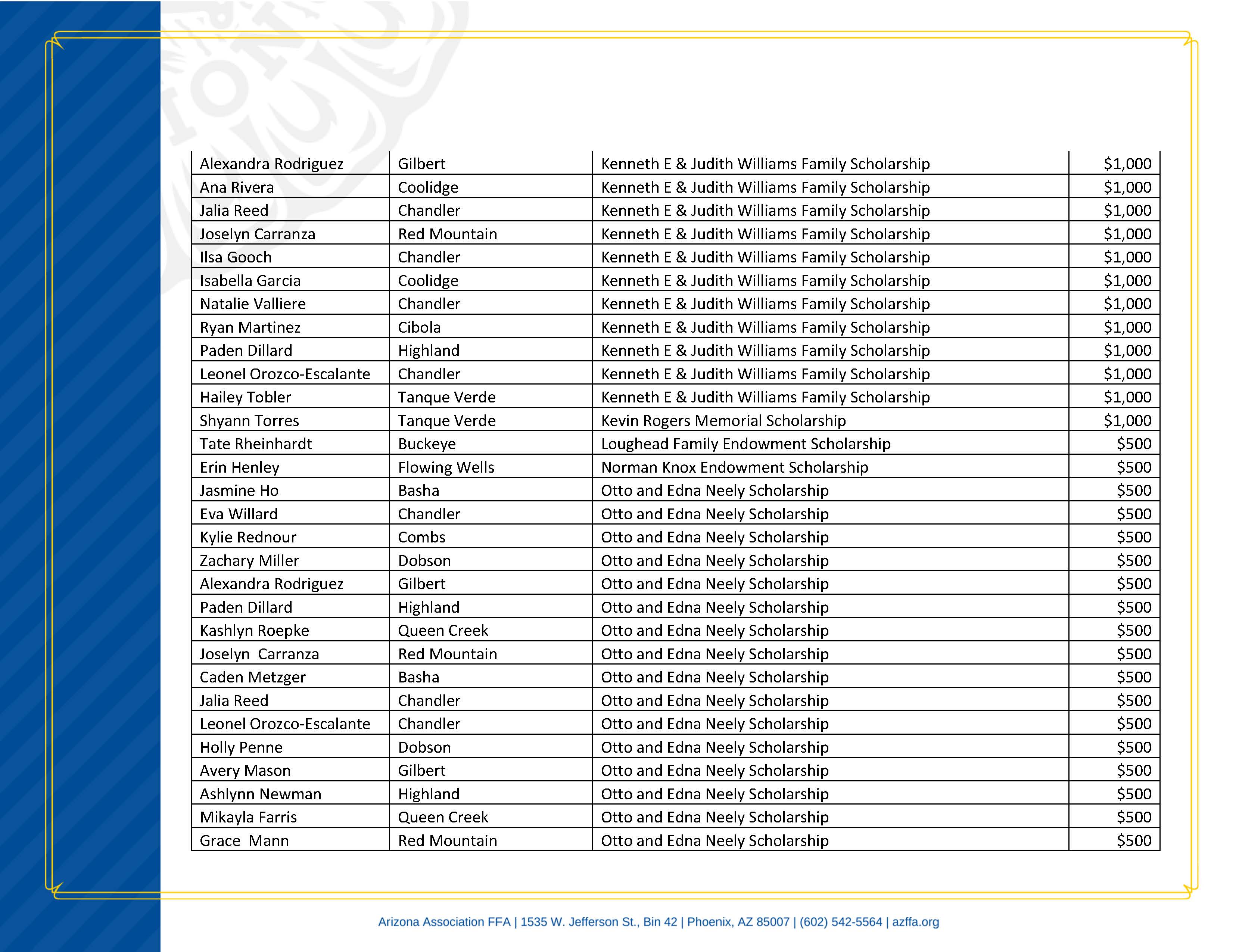 Arizona Association FFA Scholarship Application